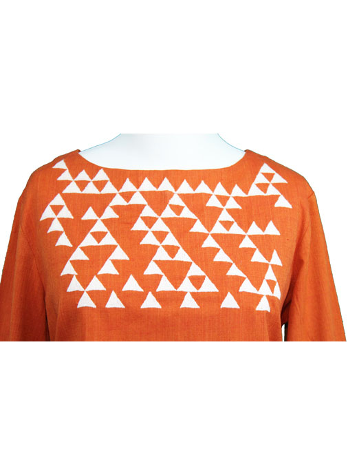 Tangerine tango with white hand embroidery.