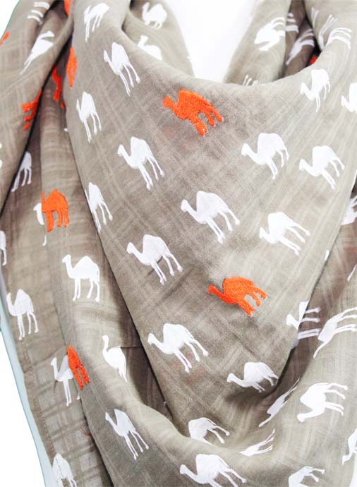 Inspired by the North African desert, our original Caravan line is the highlight of the Sahara collection with its hand screen printed camel pattern and hand embroidered details.