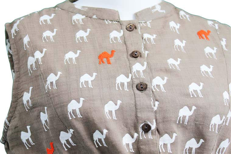 Inspired by the North African desert, our original Caravan line is the highlight of the Sahara collection with its hand screen printed camel pattern and hand embroidered details.