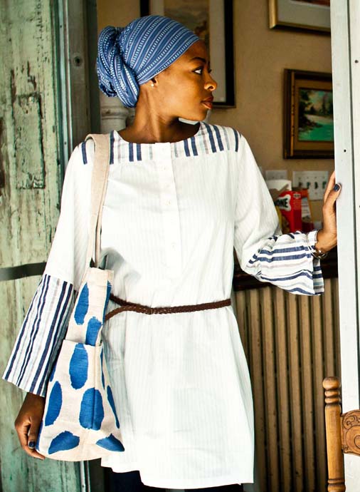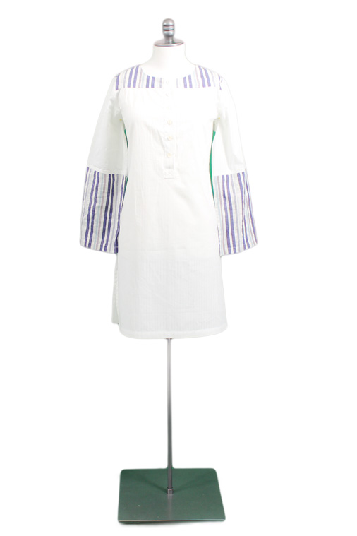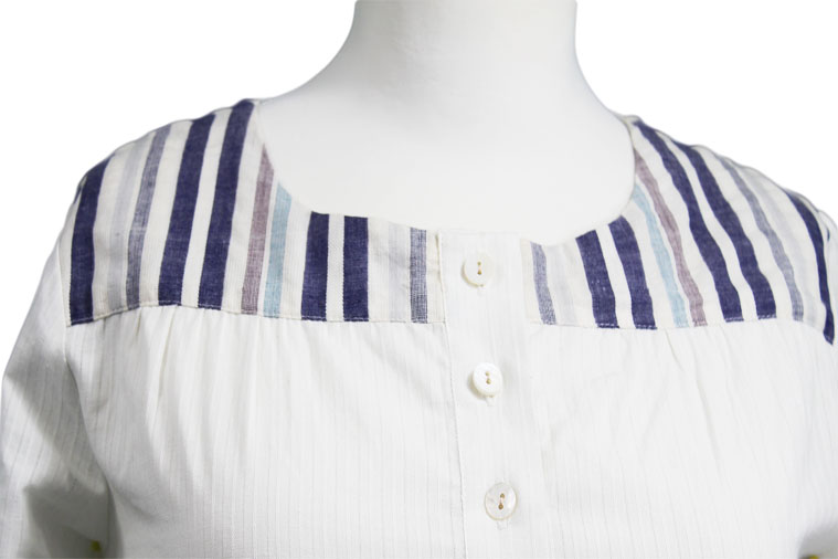 This beautiful tunic takes traditional nautical stripes to a whole new level while the hand crafted river shell buttons add that organic touch.